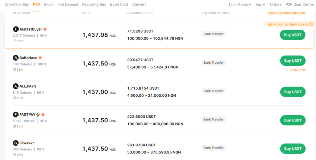 - Peer-to-Peer (P2P) Exchanges: Bybit P2P is the most common, and I recommend it. Buy USDT or directly buy SOL from verified traders.